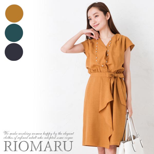 【9号】サップウエストリボン使い裾ラッフルフレンチ袖ワンピース(ウエストゴム)【エコ包装】[op]<br>■メール便不可■