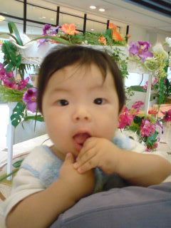 本当に久々の更新です何故か毎日忙しくて、おまけに暑い・・・・ここ最近は色々ありました。主人と秀彦と三人で関空にあるホテルのランチバイキングに行きました秀彦はバナナとうどんを食べましたしかし秀彦を連れての外食はゆっくりと食べる事ができないので写真を撮る暇もなく・・・・で・・・終わって帰りのロビーでえへへへ・・・・離乳食も3回になってからは、ほぼ毎日作っては食べさせて昼寝させて・・・・・日々同じ事に追われながら・・・・でも秀彦の笑顔を見ると心が癒されます離乳食のメニューも最近は単調で・・・・同じものが多いですが・・・・気にしませんこれからはもっと大変になると思いますが・・・・頑張らなくてはで・・・・今日の昼ごはん・・・シラスを入れましたが・・・・こんな事になってしまいました・・・・鼻の上にシラスが泳いでおります・・・・こんな事でなぜか育児のストレスが解消しますこの後シラスはお母さんのお口に泳いでいきました