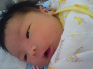 こんにちは昨日は母に留守番をお願いして、近くの西○屋に行ってきました夏物の服が99円で売っていて、思わず来年の夏物と思って買ってしまいました80を買ったのですが、果たしてうまく着ることができるのかな楽天ショップでも、カーターズのロンパスを購入まだ早いのに・・・・こんな感じで、自分の物を買わず秀彦のものばかり買ってしまいます多分・・・1回も着ない服が出てくる気がします 出産の続きです子宮口4センチから、助産婦さんが廊下を歩いたりしたら良いというので、頑張って歩きましたが、痛みが襲ってきますで・・・結局ベッドに横になって頑張ってました子宮口7センチから、記憶がだんだんと遠のき、時間の感覚が分からなくなってきました痛くて、横に向いてばっかりで、助産婦さんはトイレに行くと良いと言うのですが、痛くて痛くて・・・出ないよ~夜勤帯の助産婦さんに交替になり、この助産婦さんは日勤していた方でしただから、私のことを分かっていてくれたので、本当によくしてくれましたついに子宮口全開になりました夜の12時頃でいきみを逃すのがつらくて・・・・助産婦さんが、ずーっと一緒についてくれて肛門の近くを押してくれて・・・うれしかった主人も隣にいたけど。絶対助産婦さんの方が頼りになりました若くて可愛い助産婦さんですが、優しくて親身にになって一緒にお産をしてくれましたこの日は出産は私一人で、つきっきりでいてくれたのですしかも今日の当直の先生は私の主治医です本当にラッキーです1時頃分娩室へ・・・・そこからは・・・想像してください・・・・いきみを開始しましたが、赤ちゃんが降りてきていない・・・・もう20回もいきんだ頃、先生が登場疲れで陣痛が弱くなってきているとの事・・このままでは赤ちゃんに影響があるらしい私は、自分の事しか考えられなかったけど、先生は陣痛促進剤を使うとの事側で、薬のリスクとか説明してるけど、それどころじゃなくて・・・主人がサインをして薬を使用しました 陣痛がきつくなってきて、いきみを逃しながらがんばりましたそして、ついにいきみの許可が出て、いきみました最後の力を振り絞って、みんなに励ましてもらいながら「頭が見えてるよ・・・」「髪の毛が見えてるよ」の言葉で更に頑張りましたそして「頭が挟まってるから、少し切りますよ」と切開をしましたどんなに痛いのかと出産前に思ってたけど、そんな痛みとか分からないし、切ったら先生がいきむの辞めて「ハッハって呼吸をして」ってそしてついに秀彦誕生です号泣しました約8時間・・・分娩室で頑張りました続きはまた次に・・・・ しかし・・・あんなに痛かったのに。今はちょっと忘れてきている・・・・毎日の育児で、時々泣き止まなくていらいらすることもあるけど・・やっぱり可愛いこんな風に私も育ててもらったのかと。母に感謝の気持ちでいっぱいです