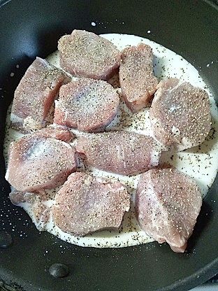 『どう料理する... 』冷蔵庫を開けたら妻が買ってきた豚もも肉があって。何を作ろうとしてるんだろ?特に何も言ってなかったので... たぶん作ってもいいのだろうと。夕飯までの時間は20分。豚もも肉は焼くと硬くなっちゃうし浸け置きする時間もないしなぁ...肉を柔らかく仕上げる方法は牛乳浸け! とりあえずフライパンに牛乳を入れ豚もも肉を入れて塩コショウを振り掛け10分放置。あとは中火でぶくぶく泡立ったらコンソメをパラパラ掛けて3分煮て。最後に輪切りネギと溶き片栗粉を入れて掻き混ぜてとろみが付いたら火を止めて終わりです。豚もも肉のコンソメ牛乳煮料理名:豚もも肉のコンソメ牛乳煮作者:Suzhoutomo■材料(3人分)豚もも肉 / 200gネギ(青い部分) / 1/3本●牛乳 / 150ml●水 / 50ml▲塩・コショウ / 適量コンソメ(顆粒) / 小さじ1水溶き片栗粉(片栗粉小さじ1) / 50ml■レシピを考えた人のコメント簡単で美味しいコンソメ牛乳煮です。片栗粉でとろみを付けましたので食べ易く、こんなものでも美味しい!...でした。詳細を楽天レシピで見る━━━━━━━━━━━━━━━━━━…↓↓ ポイントが貯まるレシピ サイト ↓↓>>最短約 30 秒!▼無料▼会員登録<<━━━━━━━━━━━━━━━━━━… 仕上がった豚もも肉は柔らかなちょうどいい歯応えで味も染みて美味しい味(*^0^*)味はコンソメと牛乳がほど良いまろやか味になってます。只... ちょっと塩が多かったかなぁ... やっぱり塩は気を付けないと (-_-;それにしても牛乳煮なんて初めて試してみましたが、意外にも美味しくて驚きでした。次回は完璧な味に作ります!