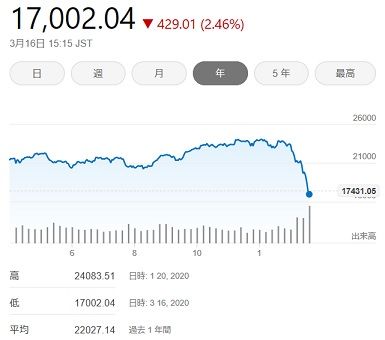 日銀の黒田総裁、新型肺炎を警戒 景気に影響「大きくなる」 - 記事詳細|Infoseekニュース日銀の黒田東彦総裁は4日の参院予算委員会で、肺炎を引き起こす新型コロナウイルスの感染拡大が景気に及ぼす影響について「大きくなることは十分に意識する必要がある」と述べ、強い警戒感を示した。「必要に応じて適切な対応を取りたい」と強調し、金融市場の混乱が収まらなければ、追加金融緩和を検討する考えを示唆した…【全文を読む】『COVID-19の影響... 』今年に入ってからの株価変動を観れば【今】の状況判断が出来ると言うものです。株価はその時々の経済状況を表しているものですが、言い換えればその時々の【不安・不安定】と言う気持ちがそのまま表れているとも言えます。昨日日銀が18~19日に予定していた金融政策決定会合を前倒しをして、記者会見を開き黒田東彦総裁の発表がありました。「新型コロナウイルス感染症の影響を注視し必要あれば躊躇なく追加的な金融緩和措置を講じる」その発表は株価へ全く反映されず【焼け石に水】で今朝も更に下げ16,900円台で上下変動中。そりゃぁ厚労省や日本政府の不甲斐ない右往左往の対応を見せつけられたら、国民は何を聞いてもどんなデータを見せられても信用できないと言う状態です。未だにPDC検査もまともに受けられない状況で「拡散は抑えられてる」なんて言われても...3/17深夜、安倍総理はG7TV会議後に速報として言った事。「オリンピックについては人類が新型コロナウィルスに打ち勝つ証として、 東京オリンピック・パラリンピックを完全な形で実践すると言う事についてG7の支持を得た」 ここのポイントは【完全な形で実践する】と言う所なのでしょう。なのに国内で進めてるオリンピック開催準備や3/26から始まる国内聖火ランナー。私の住む地域も既に日時限定の通行止め看板が街角のあちこちに立ててあります。とりあえず予定通り聖火ランナーを走らせ、聖火は一年間ガラス張りの箱にでも入れて灯しておくつもりなのでしょうか?ロシアオリンピックで聖火が途中で消え警備員がライターで火を点けた写真を思い出しましたが。さっさと「2020年東京オリンピック・パラリンピックは延期します」と発表すればいいのに。 ロシアもマレーシアも完全国境封鎖を発表しましたし北朝鮮では感染者の銃殺が続き...全世界の60~70%の人間が感染するだろうとも言われるCOVID-19です。あと半年は今の状態が続くのでしょうが... 唯一ありがたい事と言えばガソリン価格が落ちた事くらいでしょうか。「国交や戦争をすべて止めて おとなしく健やかに生きよ」と言う暗示なのでしょうが、果たして人間の本能はどちらに傾くのでしょうか?ここいらで本当の意味の「世界は一つ」を実現させてもいいのではないでしょうか。本来人間は互いの存在に依存し生きていると言う事に気付くべきだと。反日・反米・反韓・反中... 色々ありますが一掃する時が来たのではないでしょうか?直径400kmの隕石が地球に衝突したら地球生物は24時間ですべて消滅すると言う事。そんな時に互いにいがみ合い戦争をしてるとも思えないのですが...COVID-19で世界人口の50%が死滅した場合、今の生活水準はゼロになります。 電気・水・ガスの全てのライフラインが絶たれPCやスマホなんてものも使えなくなり、この世の終わりを感じさせられる...政府に対し文句や不満をぶつけられる今の方が未だマシだなんだろうと。