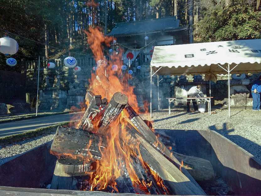 朝7時半に神社集合し 薪に火入れして【歳旦祭】の準備に取り掛かり、