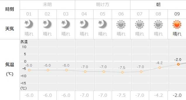 数日前から土曜の朝方は-7℃ になる予報が出てましたが、