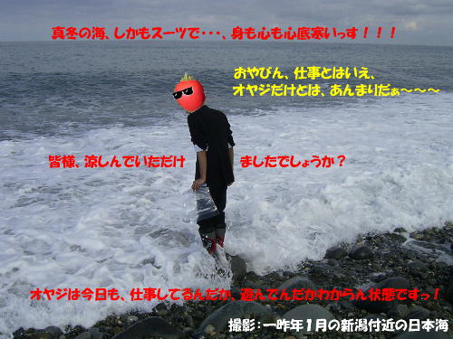 -池袋大戦争???しょっぱなからすみません、ウソ書いています・・・実は今回のねた夏休みちょっと前の話しです。中学生になり、交友関係も広がった娘さん、6月より近所の友人と夏に映画を見に行くことにしておりました。一番近所の友人なのですが、電車で3駅離れる、普通の公立とは異なる点、まだまだ小学生に毛が生えた程度の世間知らず、ちょっと友達のところに遊びに行ってくる・・・、と言う言葉がまだまだ心配な年頃です。オヤジとの盆休みの年中行事の映画「SW」を気にし、お友達がアニメが好きとのいうことで「鋼の錬金術師」、ふっ、まだまだ子供だな・・・(と言いつつ、オヤジも見たいっ!、ふっ、まだまだ子供だな←娘さん談)。しかし、娘さんオヤジによく似ており、その他「皇帝ペンギン?」、「アイランド」も見たいと宣う、守備範囲が広いお方です(連れてくオヤジの財布は狭い・・・)。直前になり、お友達から連絡、夏のクラブ練習で日にちの変更、すると別な友達と行くことになったそうです。行き先は池袋、ブクロぉ~~~?しかしまた、なずぇ~~~?、オヤジの生息地からすると、銀座、渋谷あるいは新宿が楽なはず。疑問に思い問いただしてみると、今回一緒に行くお友達がそちら方面とのこと、小学校の頃に比べ、交友関係の都合上、なんともとてつもなく東京をあるいは近県を、縦横無尽にふらつき歩く娘さんになるのではとちょっと心配です。お友達も同い年、むこうの親御さんも心配されると行けないので、17:00を目標に帰宅させることとしました。まあ、オヤジの繁華街の記憶は、はな垂れ小僧時代、池袋、新宿、渋谷とも22:00以降の記憶しかないので心配しすぎの面もありますが・・・(←オヤジだって問題、学生服のまま直接バイト先に行き、その帰りの02:00頃に、補導されたこともありました)。お友達が「電車男」を見たいとのこと、妻は「電車ごときを大スクリーンで見ることないじゃん?」と否定的、しかし友達と約束してしまったのでと娘さんも折れず・・・、いつもは怒られているという一方的なバトルから、久々に対等のバトルと思いきや、妻が早々に戦線離脱。娘さん、穏やかに出かけていきました。時は既に夏休み、皆様のお子様、朝から夕刻、へたをすれば夜まで夏期講習、塾でがんばられている事と思います。さらに、親御様、夜ともなれば忙しい中、迎えに行くこと多々あるかと思います。しかしながら、毎回迎えに行くことも難しく、お子様一人で帰られることがあるやもしれません。夏、夜といってもまだ薄明るいことがあるかもしれませんが、帰宅路、車や変なやつ(←オヤジのことですかぁ~)に十分気をつけるよう、お子様に言い聞かせるなどして、夏期講習がんばってください(娘さんの時は、塾を出る時電話を義務づけていました)。最近は聞かなくなりましたが、2~3年前、娘さんの通う小学校周辺に変な輩が出没(←決してオヤジではありませんっ!)、児童を追いかけたり、いきなり殴って逃走した等の事件があったもので、中学生になった今でも少し心配です。ちょっと早め、16:40に帰宅した娘さんに、「電車男、どうだった?」と聞くと、「やってるとこがよくわからなかった」とのこと、「どうしたん?」、「結局、宇宙大戦争にした、ゆっくり座って見れたよぉ~」とのことでした。妻も「電車に比べればまあ許せるでしょ、あまり好きなジャンルじゃないけど、その手の映画、大きいスクリーンで見ると迫力あるでしょ」とのことでした。主演はトムか・・・トムやん・・・トムやん君・・・トムヤンクンが久々に食べたい(飲みたい?)・・・、今度の休みはタイ料理か?。しかしながら、妻の毎日の晩酌に加え、週末の外食の多さ、エンゲル係数の高いオヤジ一家です。夏なので、トマト顔、お色直ししてみました。ずら以外のかぶり物が好きなオヤジです(ダースベイダー用ストッキング間問題有り)。頭の中のBGMELECTRIC LIGHT ORCHESTRA:XANADU(OLIVIA NEWTON JOHNと書かなかったり、ドラマ「電車男」のテーマ曲を書かないとこが、ひねくれたオヤジらしい・・・)