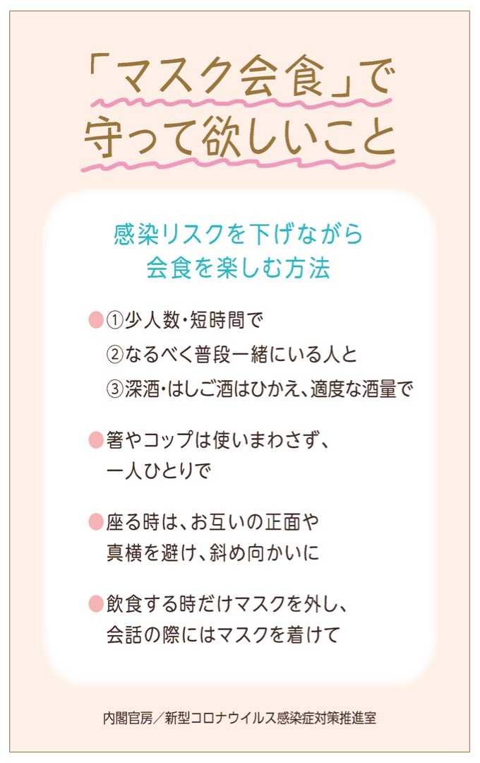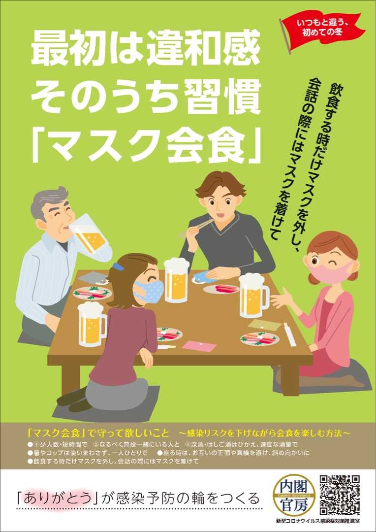 感染リスクを下げて会食する「#マスク会食」をお願いします。飲食の際にはマスクを外し、会話の際にはマスクを着けて。