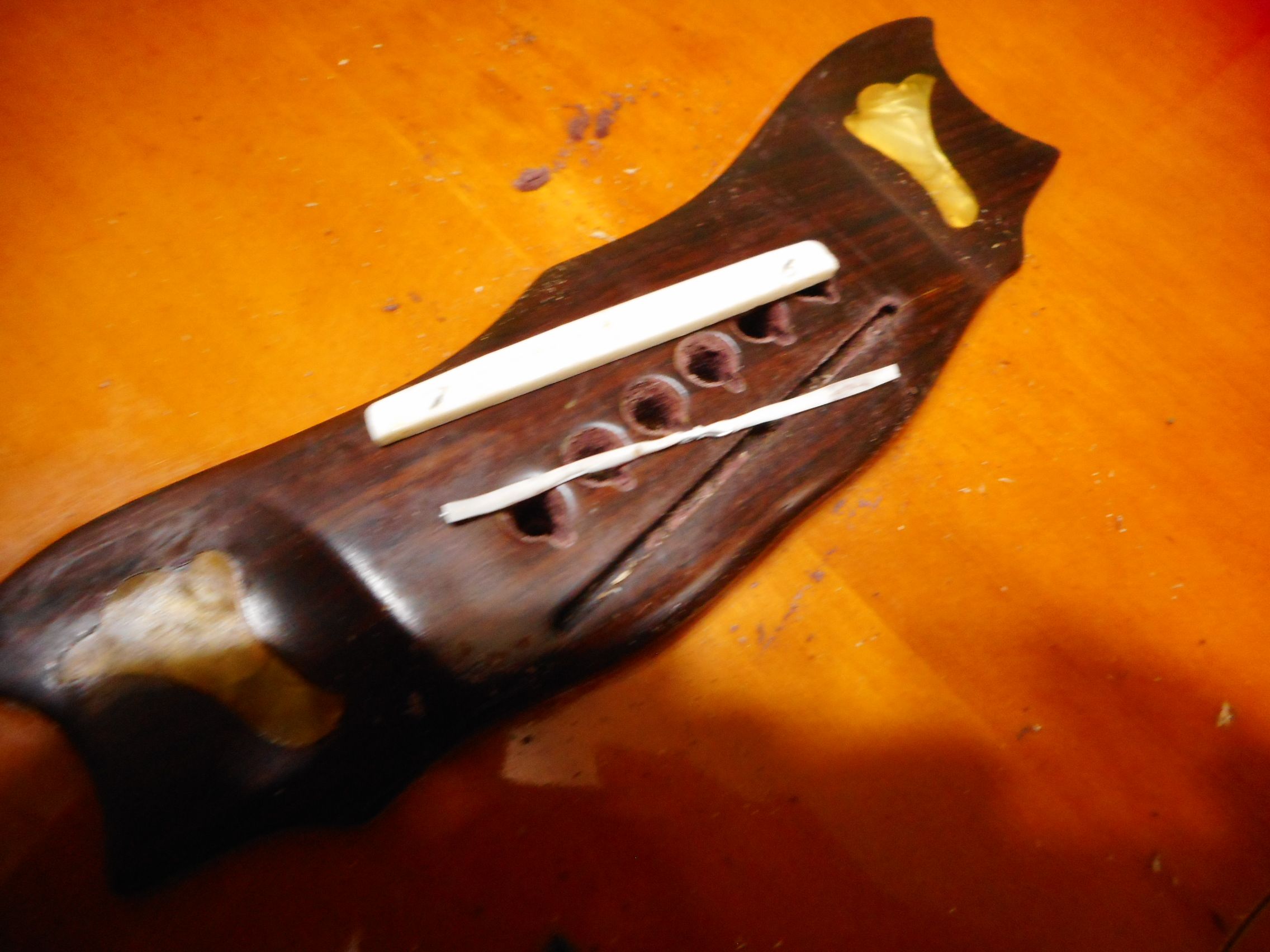 ●外したナットはこの通りです、フレットボードのRとここまで掛け離れたサドルは珍しいです