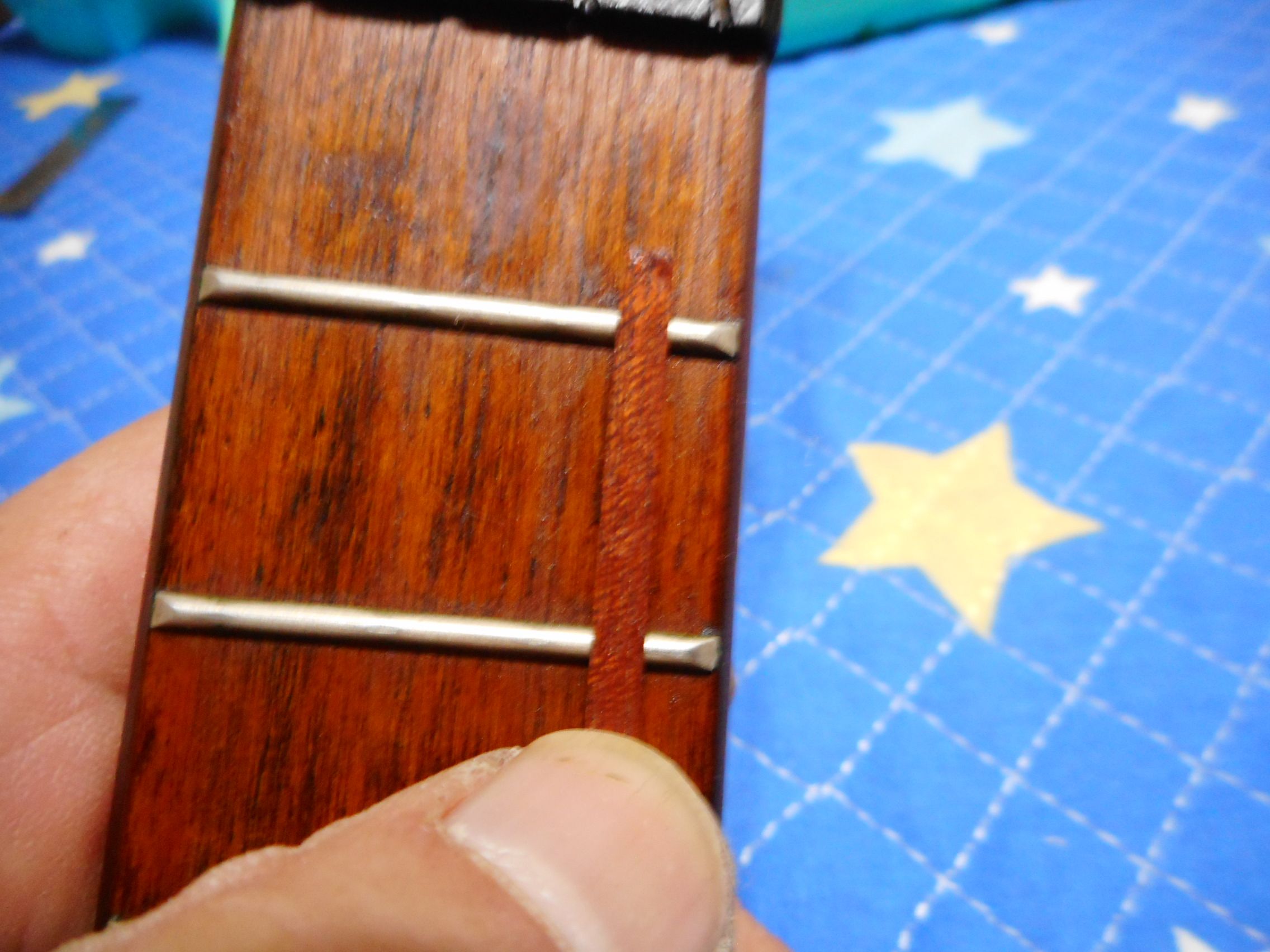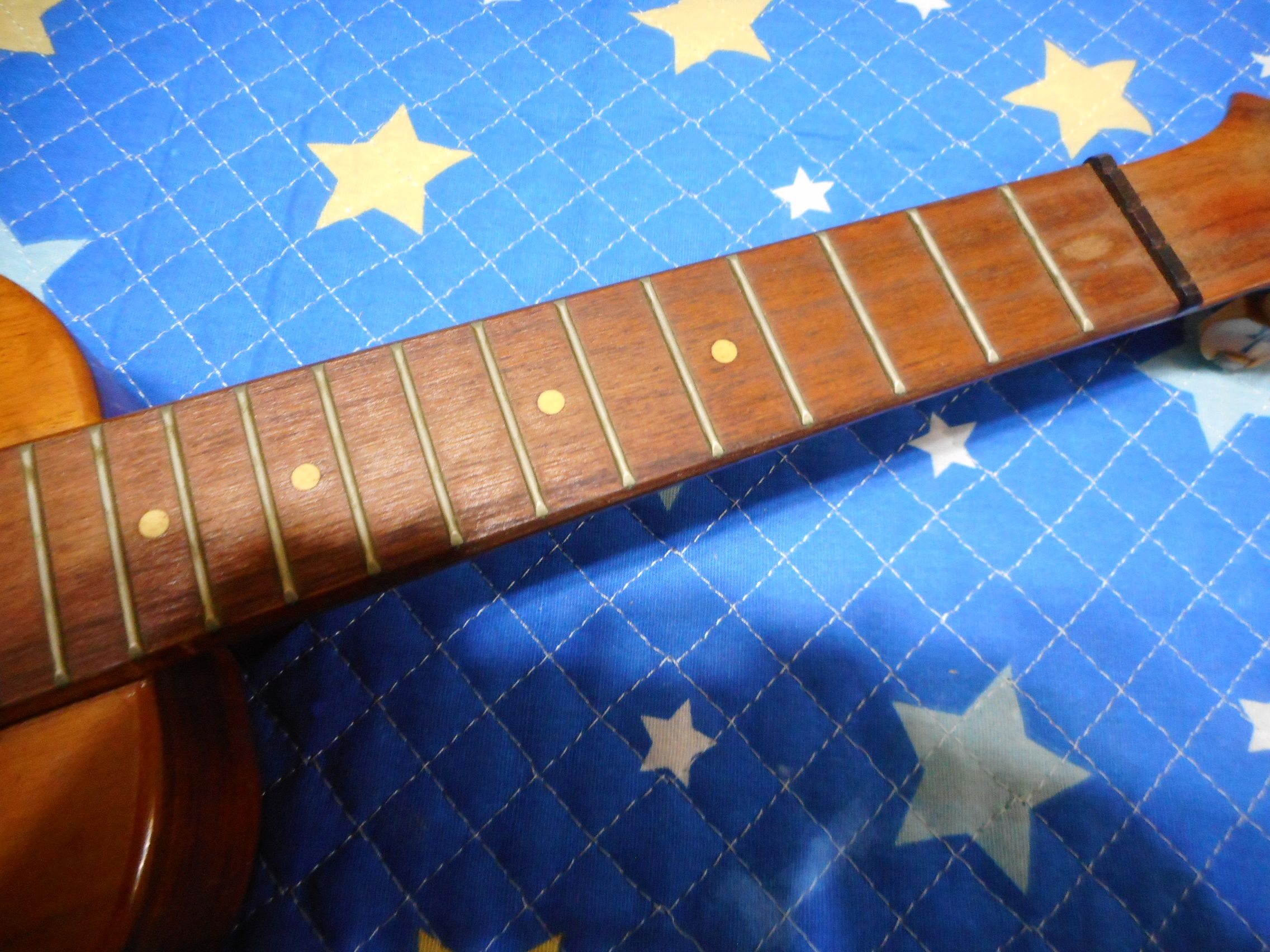 ●フィンガーボードとマホ材に専用オイルを塗って目立た無いかテストします