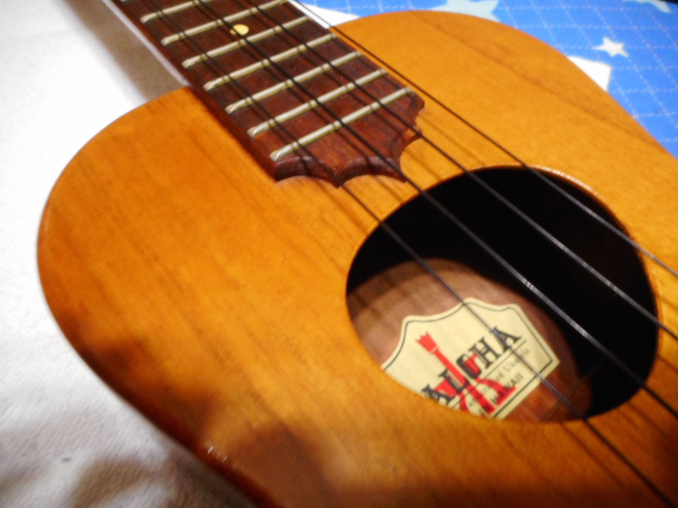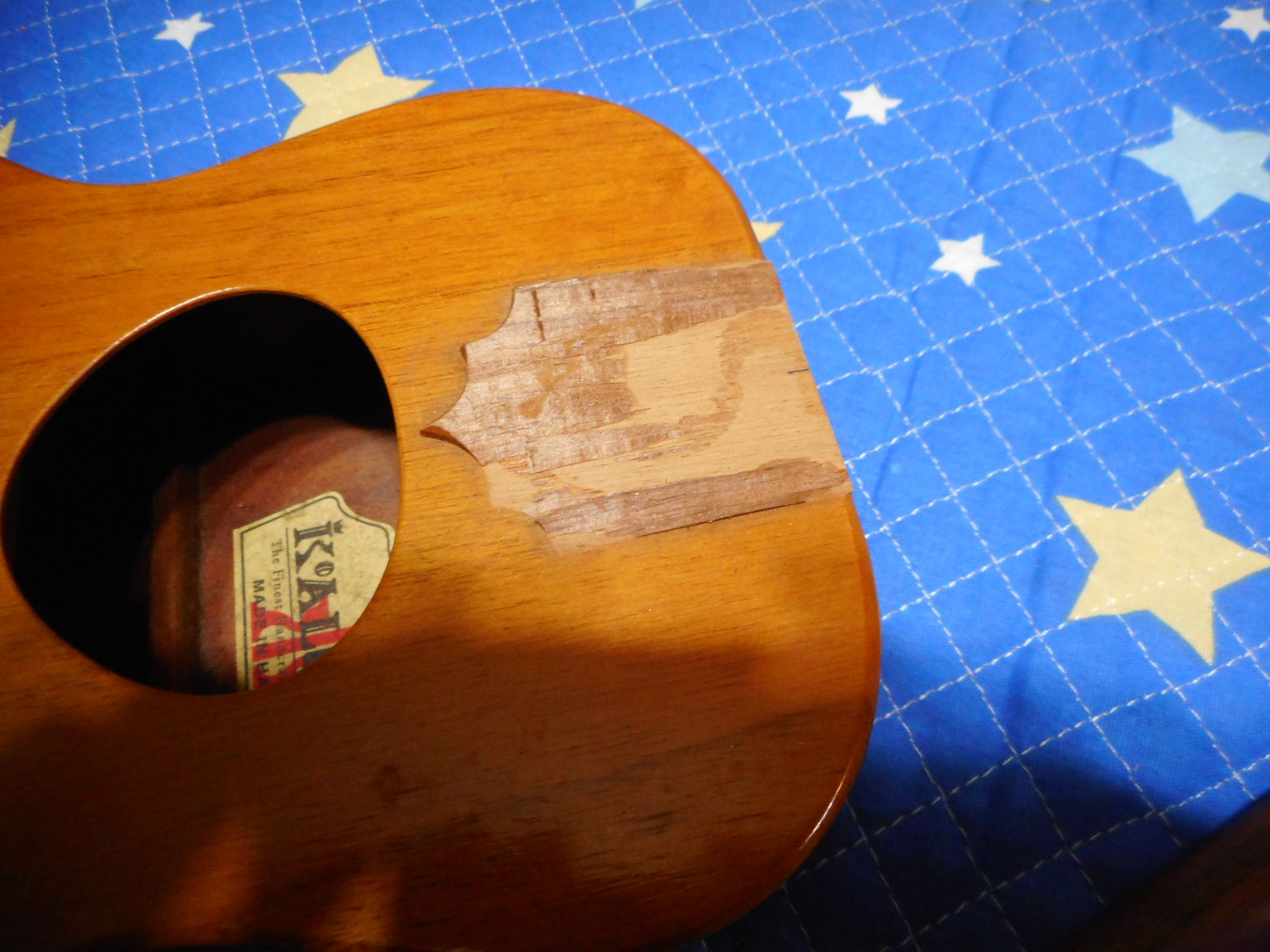 トップの一部が剥離してます。ガラスの靴・ウクレレKoALOHAらしい所です。