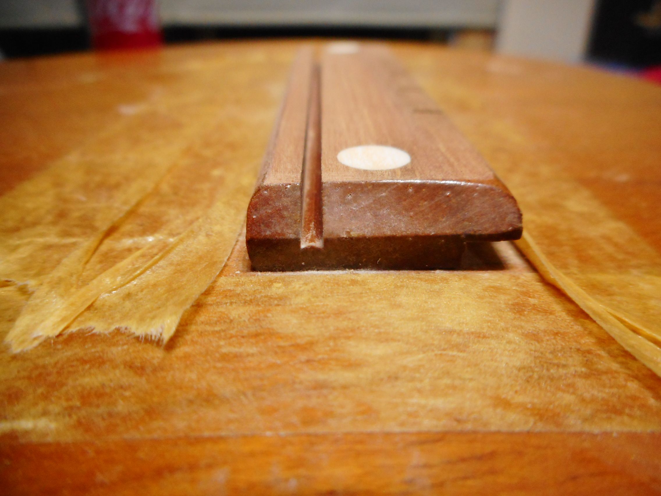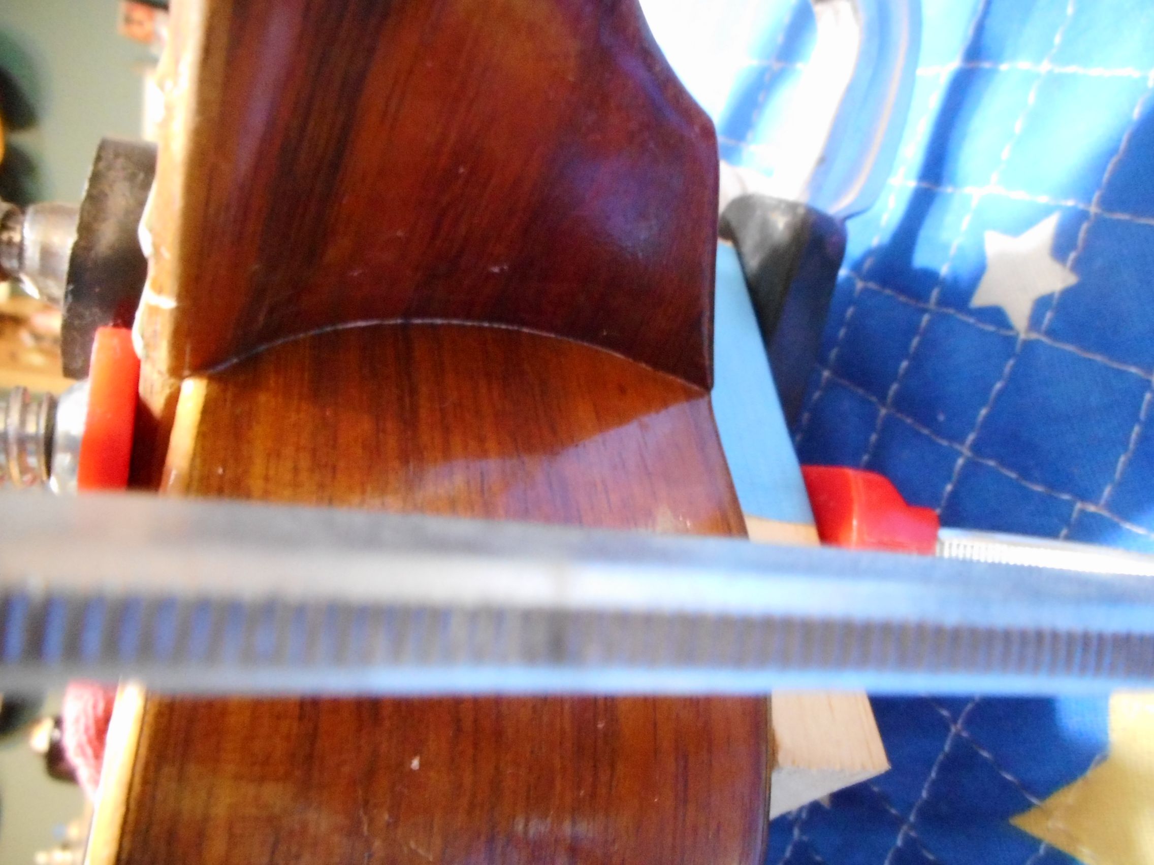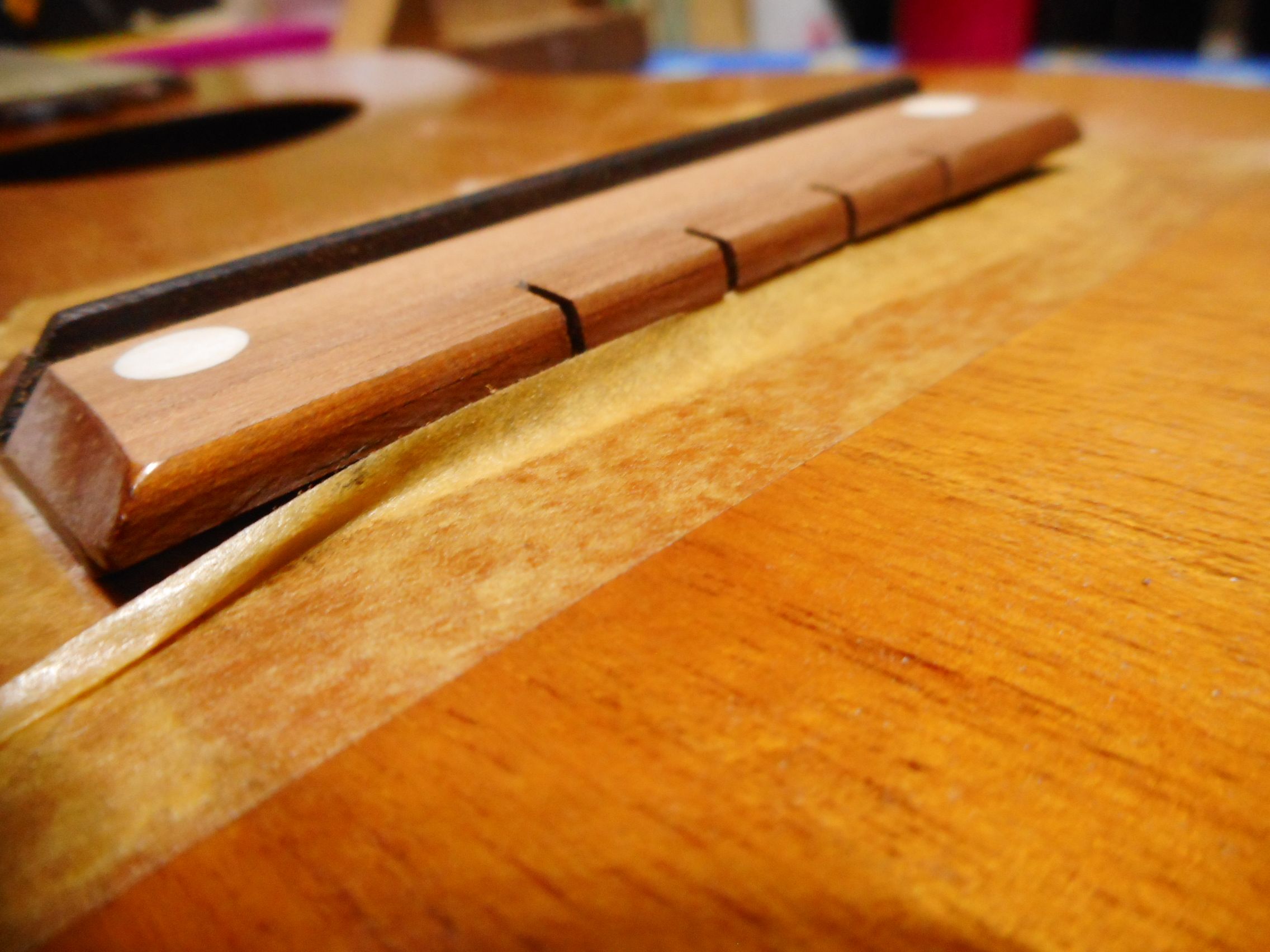 ●ブリッジトップを予定の弦高にするために必要最小限だけ削り、サドルを削る余裕を