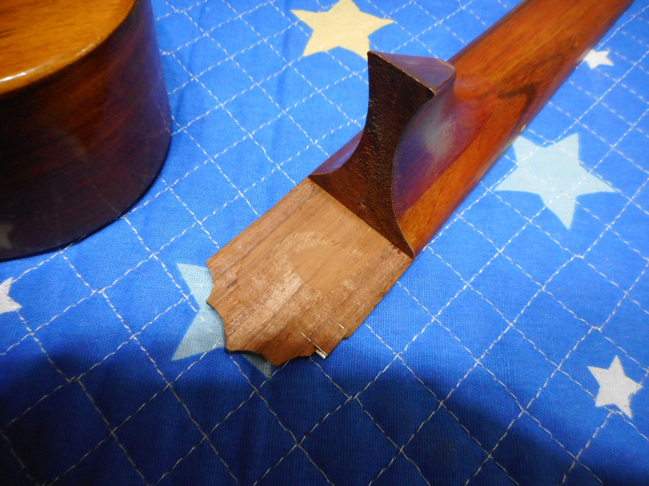 不幸中の幸いでネックのセットは比較的簡単ですが、欠けた部分の修復は