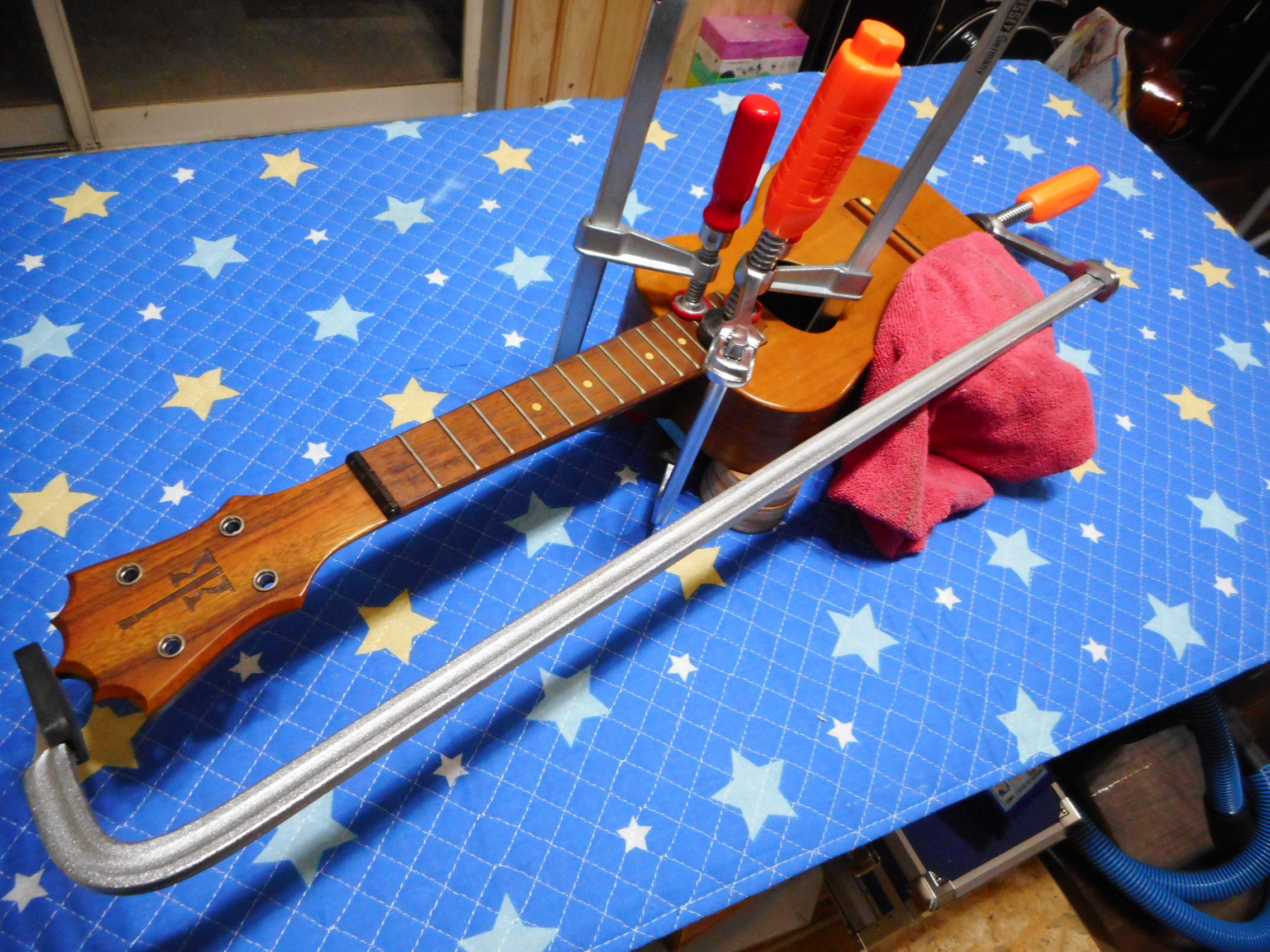 ●シュミレーション通りにクランプを掛けてネックを張り戻して行きます