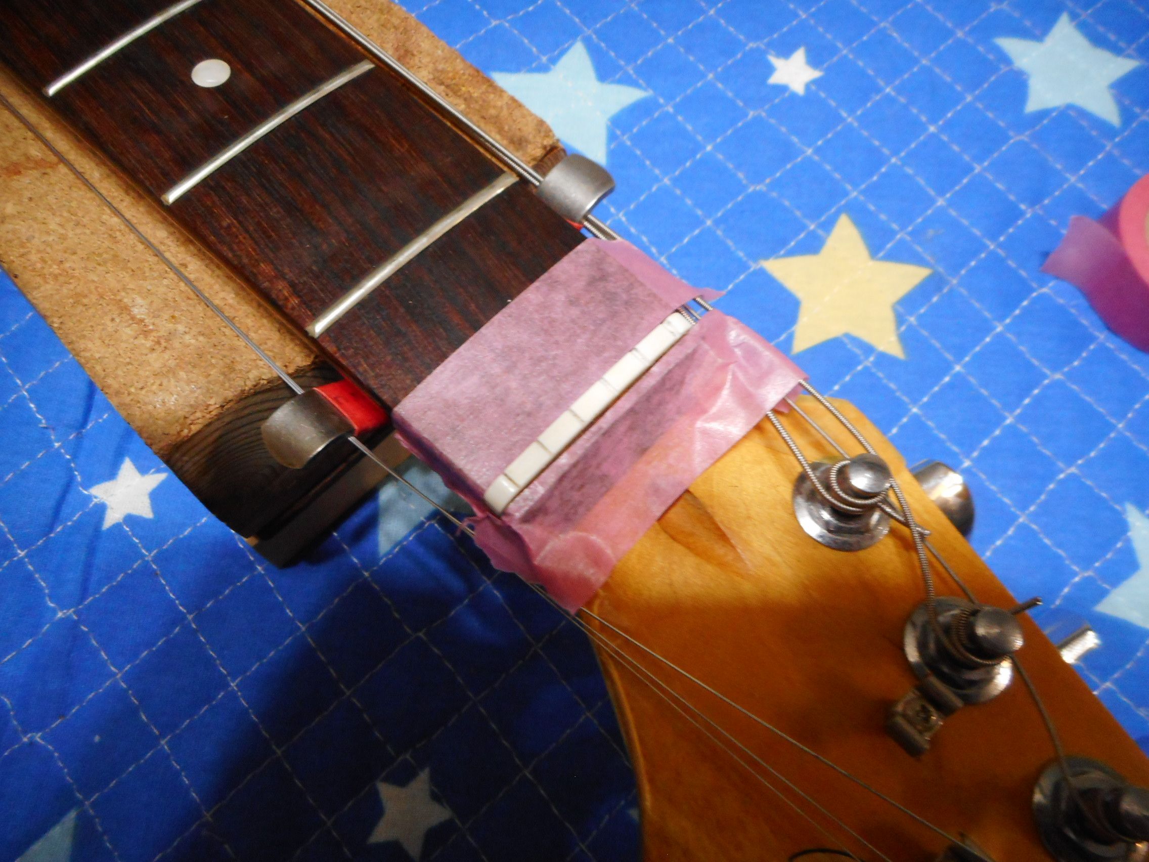 ●フェンダー系のナットは溝のペグ側が破損しやすいので、マスキングをした後にドラィーヤー