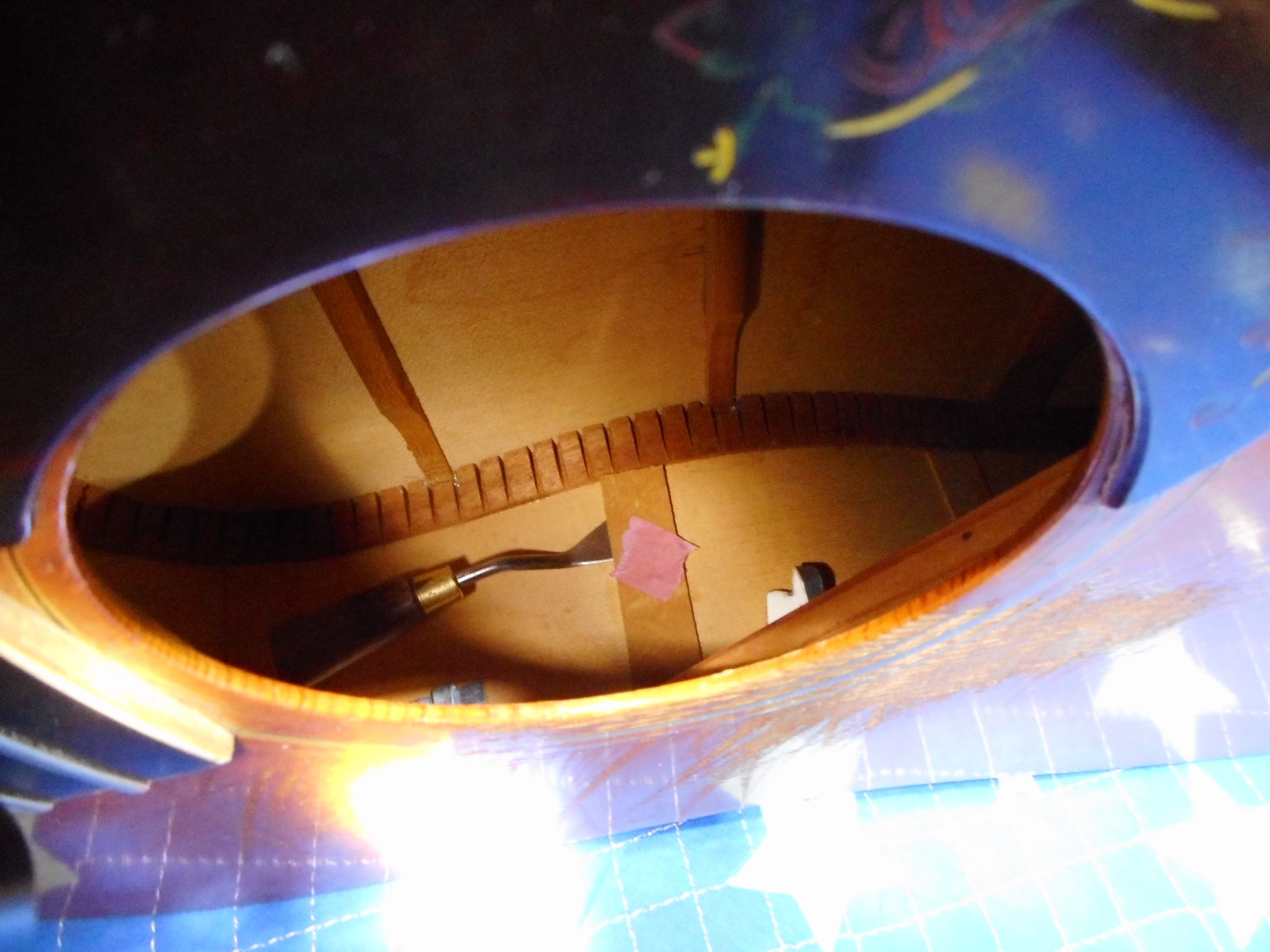●ネックヒールの剥離は最大深度で3cm程度ですからで、隙間にタイトボンド3で接着