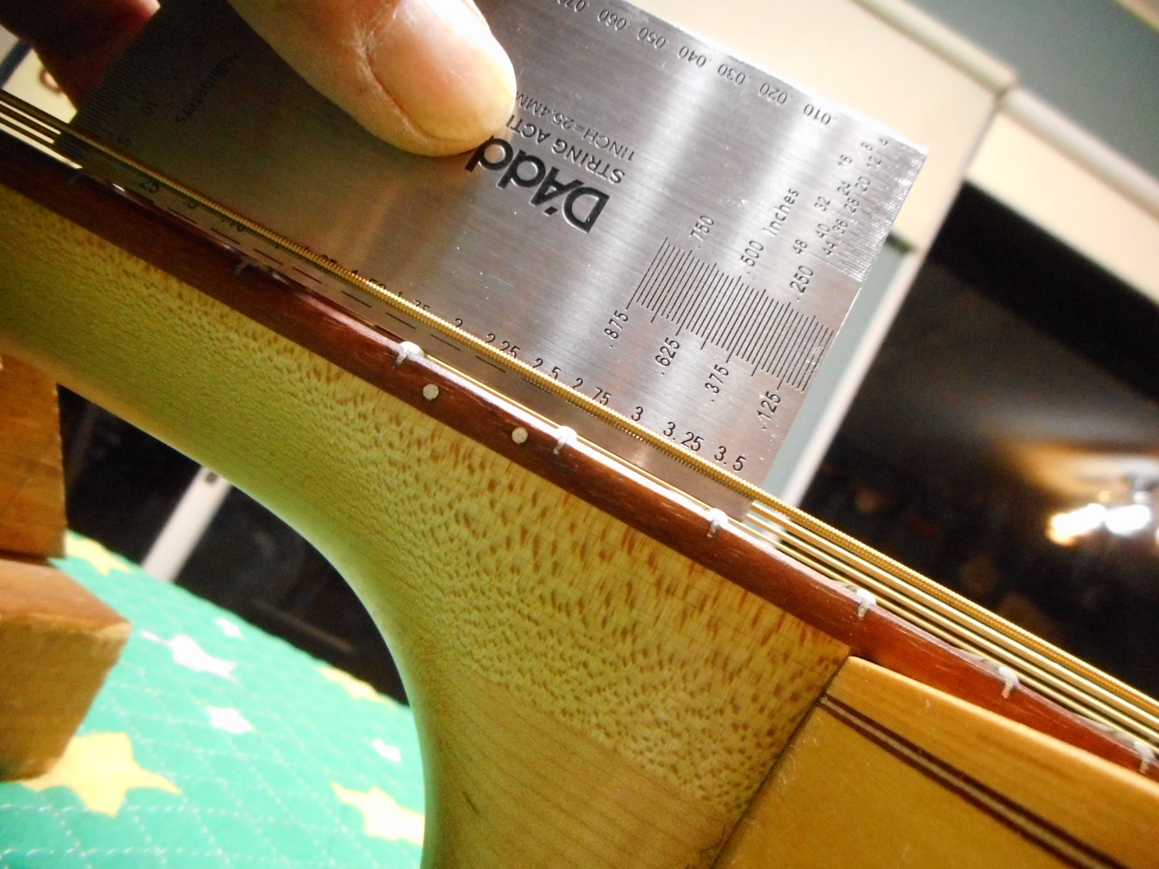 ロッドの調整は極僅かでしたので、サドルを削って弦高を下げます