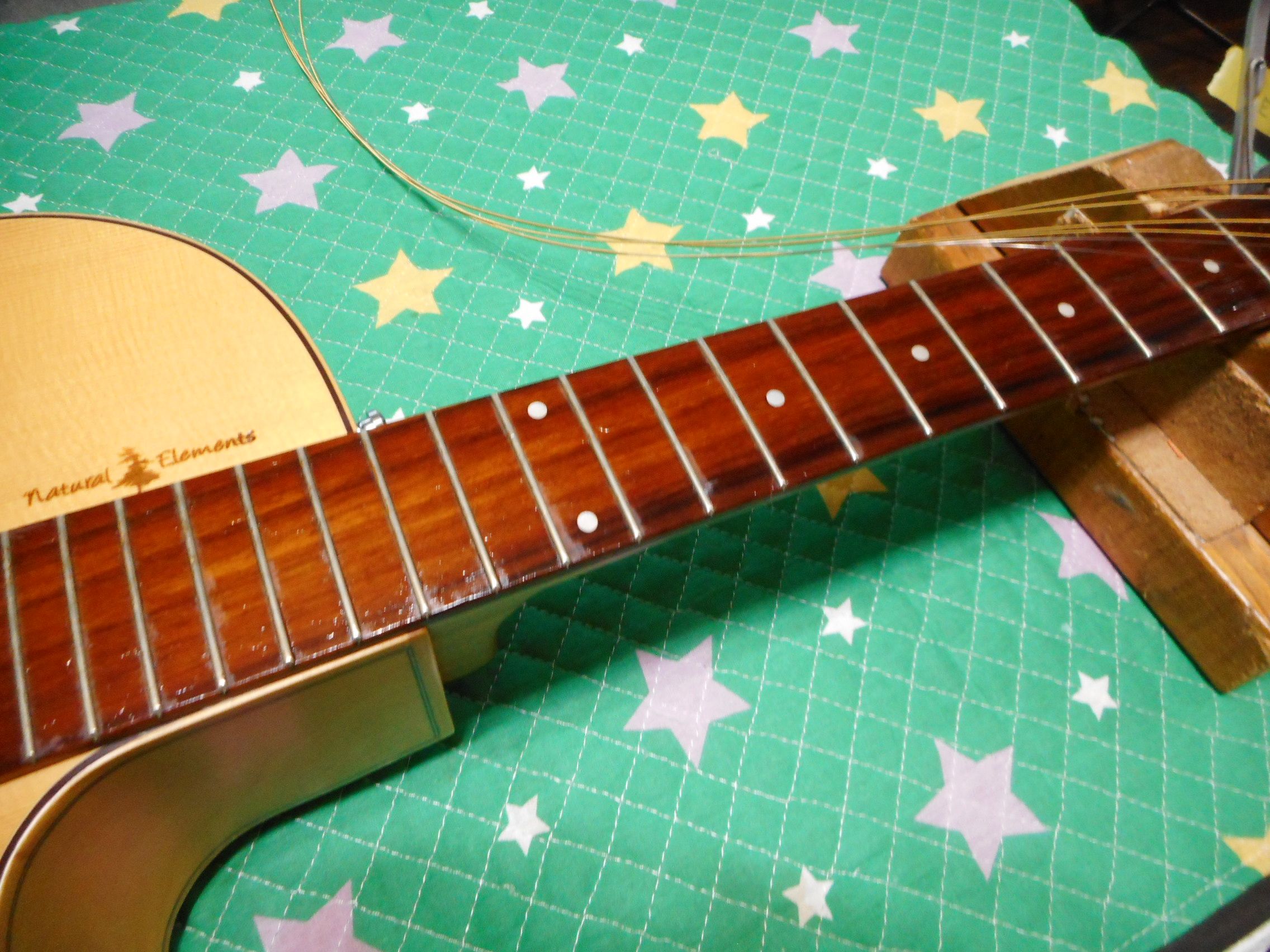 ●フレットボードにオイルを塗って、フレットを磨いて有ります