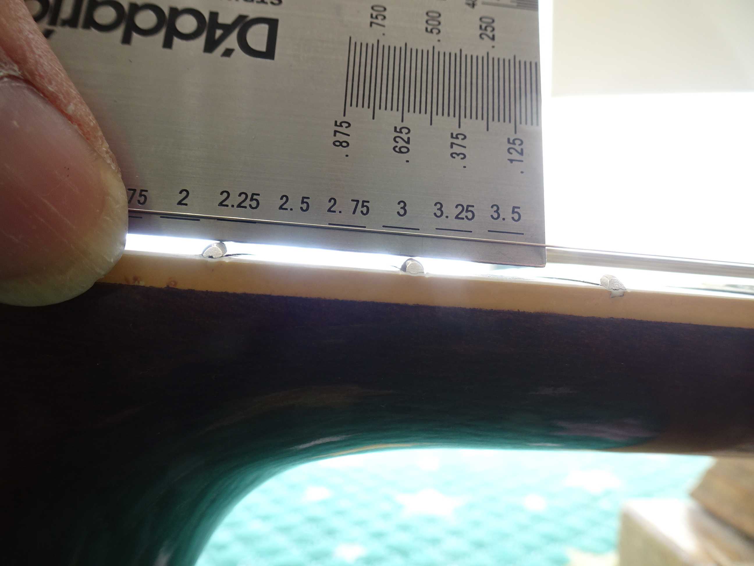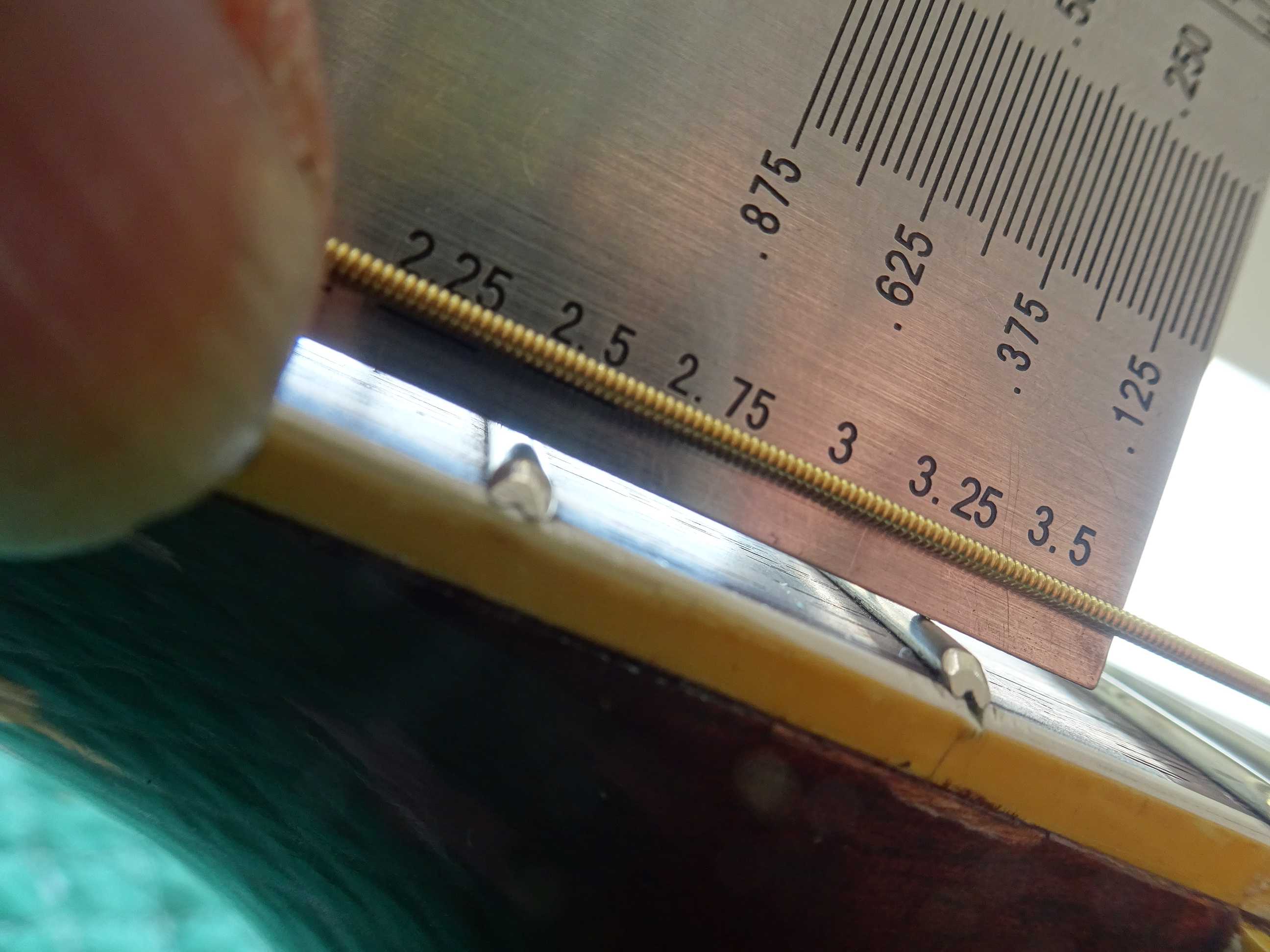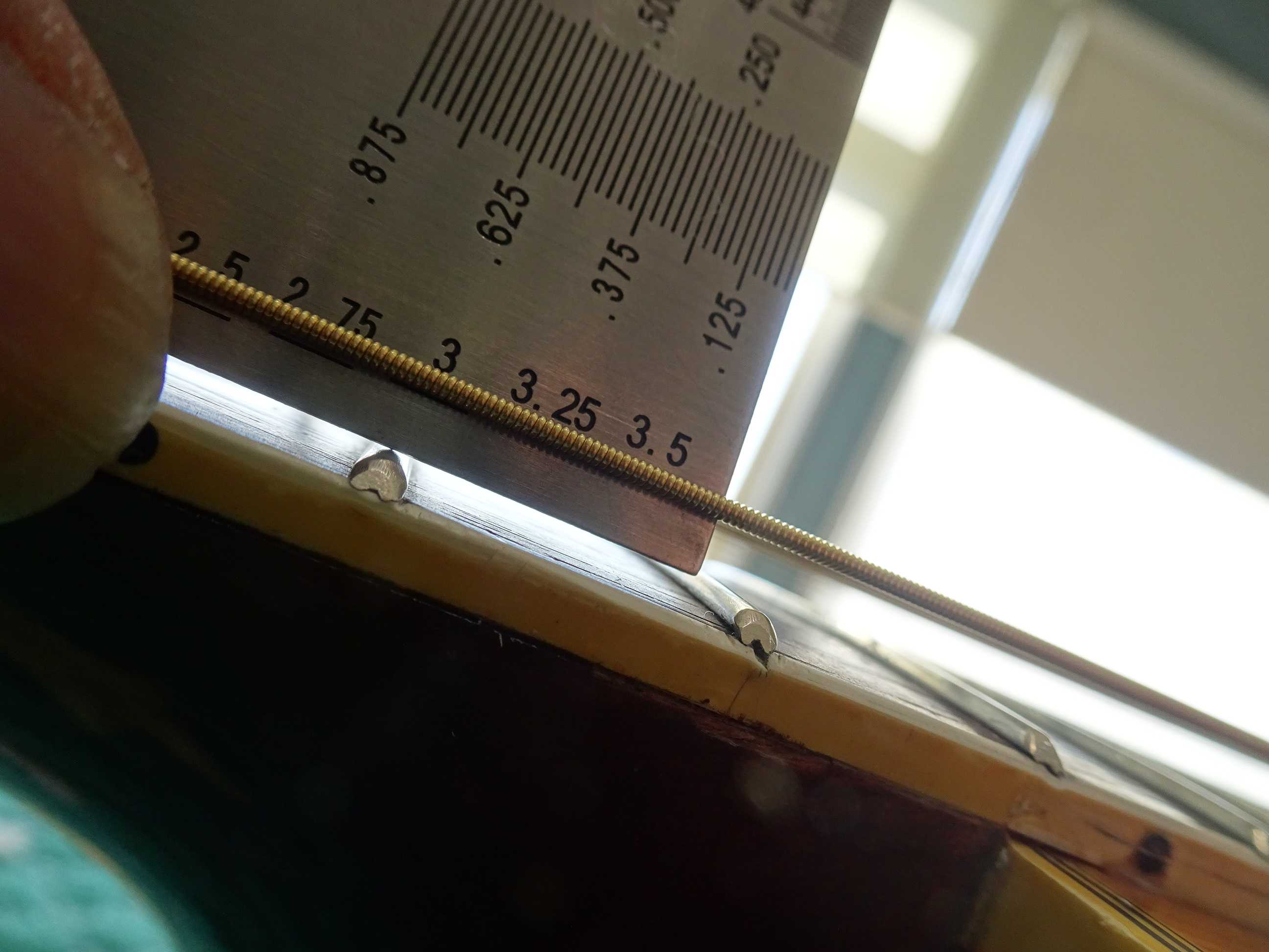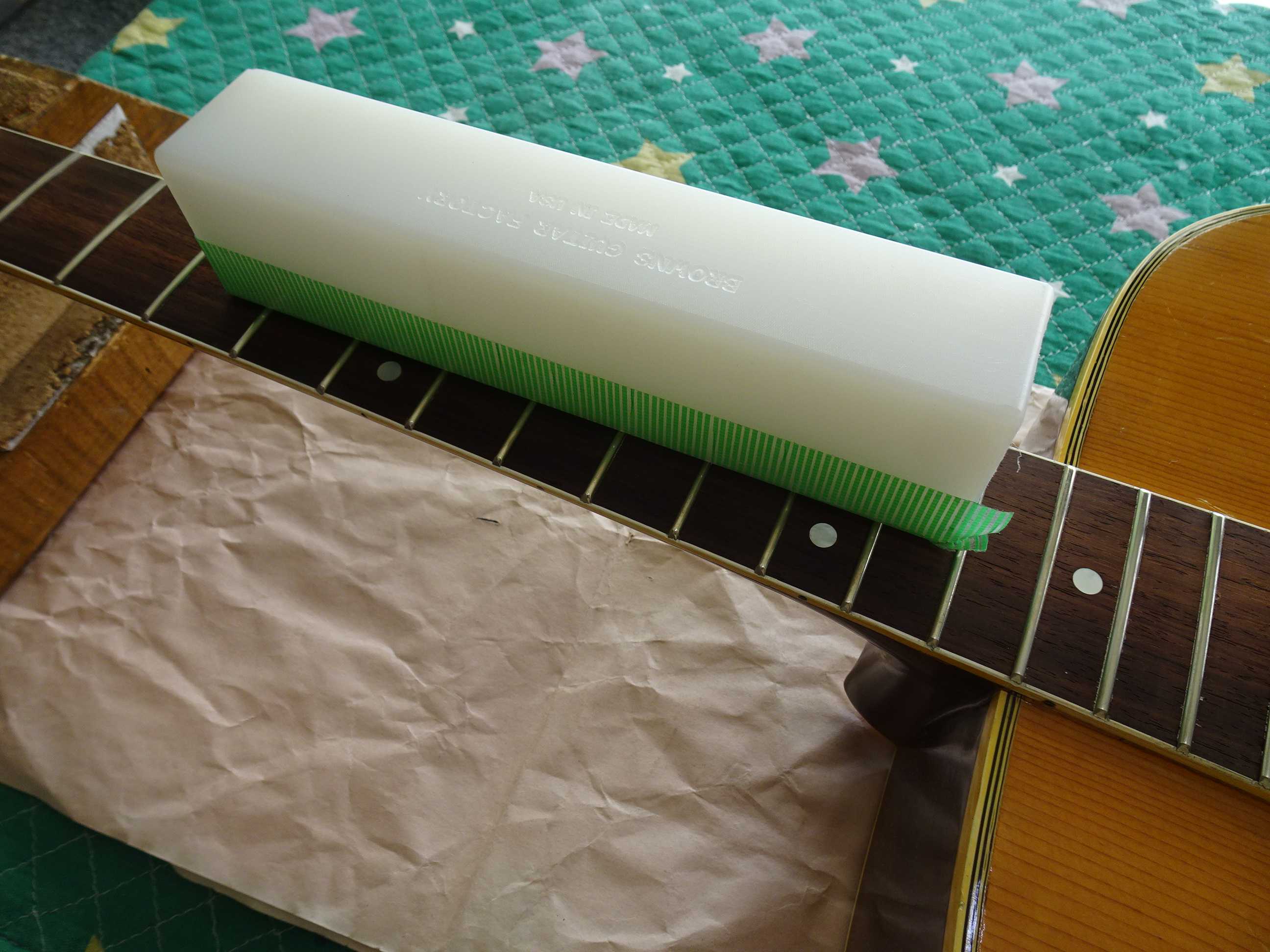 ●1フレットにスペーサーを挟んでセッティングします
