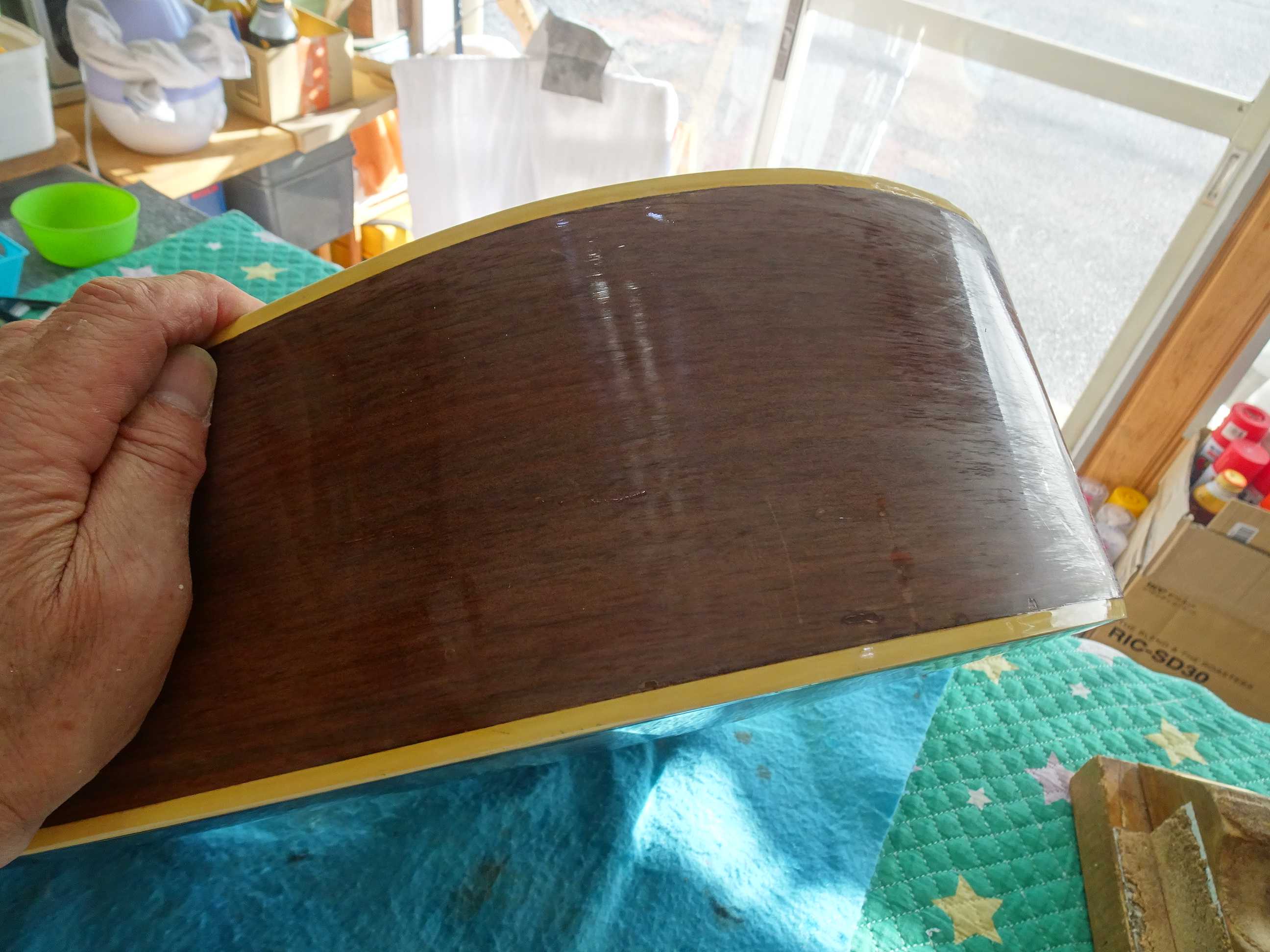 ●サンドペーパーの番手を上げながら水砥ぎをして、着色材で色合わせをしておきます
