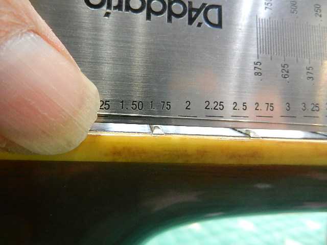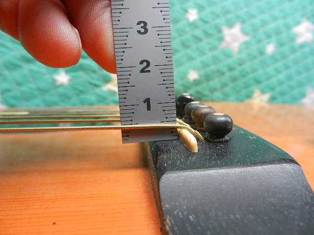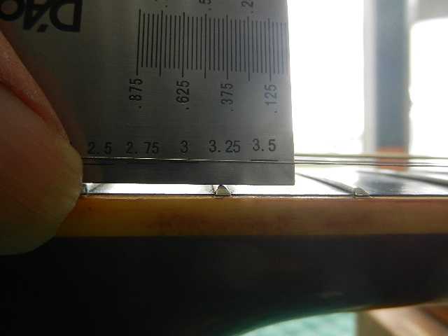 ●6E弦の下で3.0mm//1E弦の下で2.2mm//ブリッジの厚みはセンターで8.0mmです