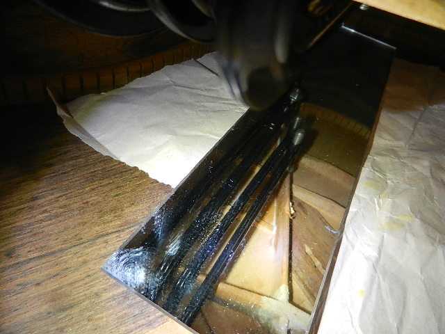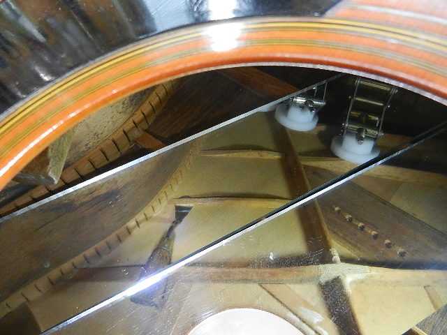 ◆ボディ内もクリーニングした流れで剥離しているブレーシングを確認します
