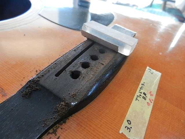 弾き易いセッティングにするにはブリッジのトップを削る必要が有ります