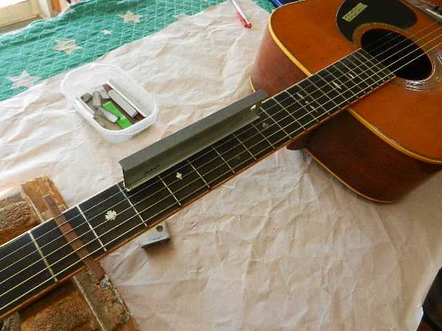 ●擦り合わせが済ましたのでフレットクラウンを修復します