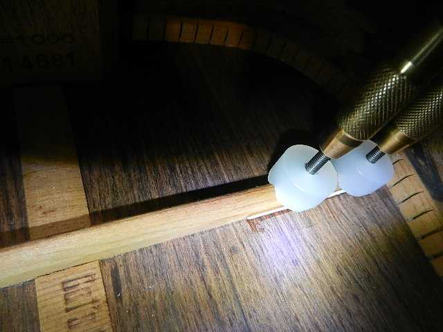 ●1フレットのクリアランスが充分に有るので、1フレットを気にせずにロッドを調整します