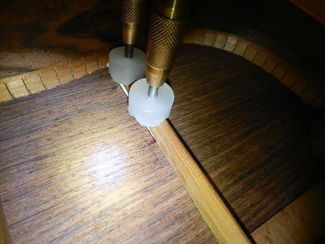 ●懐の最も深いスプールクランプでも届かないため、ジャッキも使って接着固定します