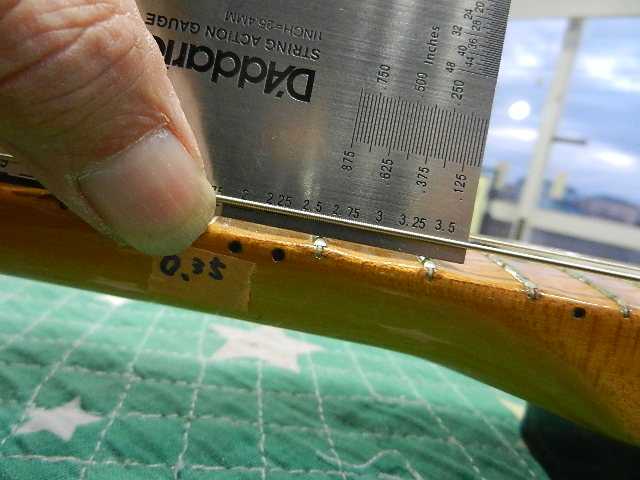 ●ブリッジ駒を調整する前の弦高は、6E/12Fで2.50mmですが順ゾリが無くなったので