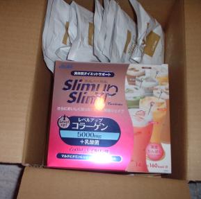 buzzLifeさんよりスリムアップスリムプレシャスシェイクが届きました。1箱14食入り(4267円)とお友達用10包です。◆味 マンゴー、抹茶、カフェラテ、黒ごまミルク、イチゴ、バナナ、ココア◆1食あたりの熱量 153~160Kcal◆1食あたりの成分【美容ケア】 ヒアルロン酸 25mg ・コラーゲン 5000mg ・CoQ10(コエンザイムQ10) 10mg ・乳酸菌粉末(殺菌) 50mg 【ダイエットサポート】 りんごポリフェノール100mg 【栄養バランス】 約1/3日分*のビタミン11種類 ・ミネラル 4種類 ・たんぱく質 約21g ・食物繊維 約7.5g ※栄養素等表示基準値の1日分の約1/3量これでダイエットに挑戦!!詳しくはスリムアップスリムを参照。
