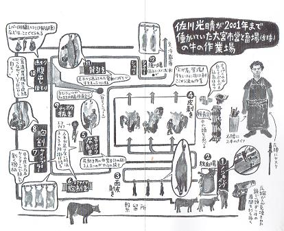 ​  佐川光晴 が屠殺の職人になった瞬間だった。  ​ ​​(写真は屠殺の行程を描いたイラストです。)