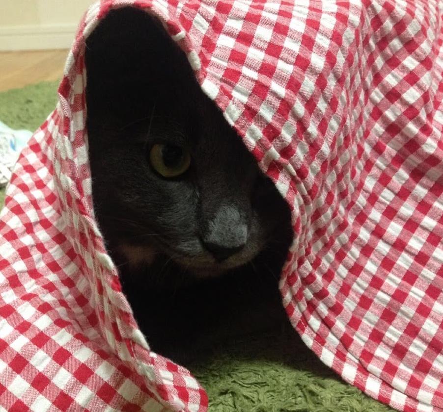 「ちょっと、隠れてるつもりなん?そやから、それは洗濯もんやって。マッ、なんなん、おこってんの、あんた?」