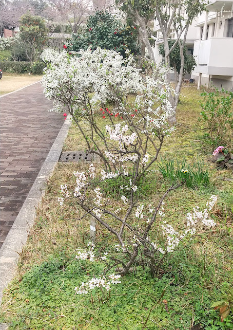 ​​​​​​​​  サクラ が咲き始めて、 は散り始めて、まあ、それどころじゃないといえば、それどころじゃないのですが、棟の玄関先で 「ゆすらうめ」 、漢字だと 山桜桃梅 のようですが、が、​