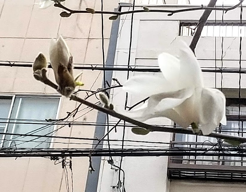 これから サクラ とか、 元町駅前 黄色い花イペ とかが咲くのですが、この モクレン 、来年も、こうして眺められることを願いますね(笑)。​​​​