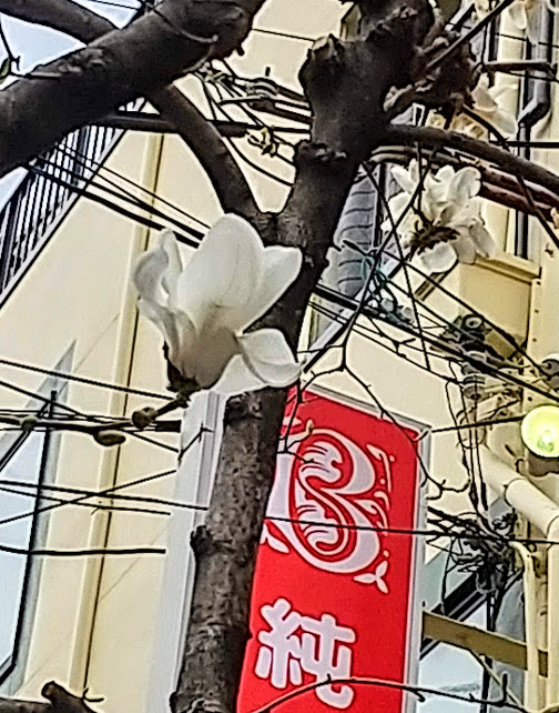 で、 毎年 のことになっているのですが、ここの モクレン がお目当てでやって来ました。 北長狭 本願寺あたり 辛夷の花 は見損じましたが、ここ、 元町4丁目 5丁目 の境界になている南向きの道路の モクレン には、なんとか間に合ったようです(笑)。