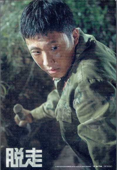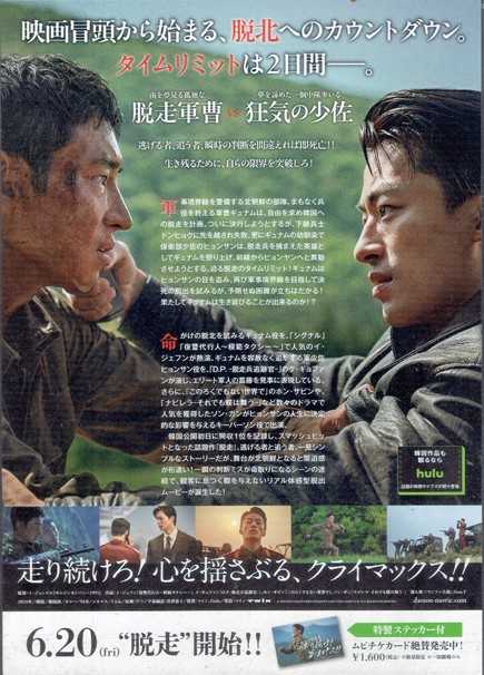 上の写真は チラシ で、下の写真は劇場の入り口でいただいた 写真カード です。走っている彼が、南北の軍事境界線を警備する北朝鮮の 軍曹ギュナム(イ・ジェフン)くん です。
