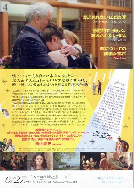 見たのは ケリー・オサリバンとアレックス・トンプソン という ダブル監督 「カーテンコールの灯」 、英語の題だと 「Ghostlight」 です。劇場とかの足元にある灯のことでしょうか。邦題とは少しイメージが違いますね。で、見終えて、​