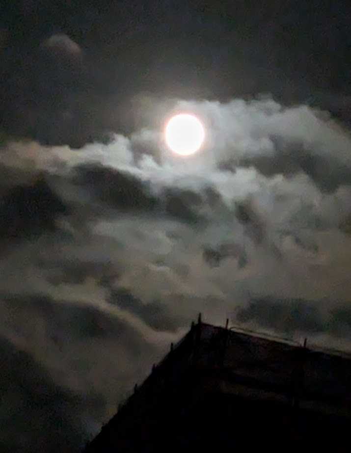 スマホで撮りましたが、なんだか嵐の前の月のようになってしまいました(笑)。実は、空の方の写真を撮ろうと差し上げたがスマホの画面タッチが、ようやく、右手の指でできるようになったんです。当分、楽しいリハビリ通いが続きますね。