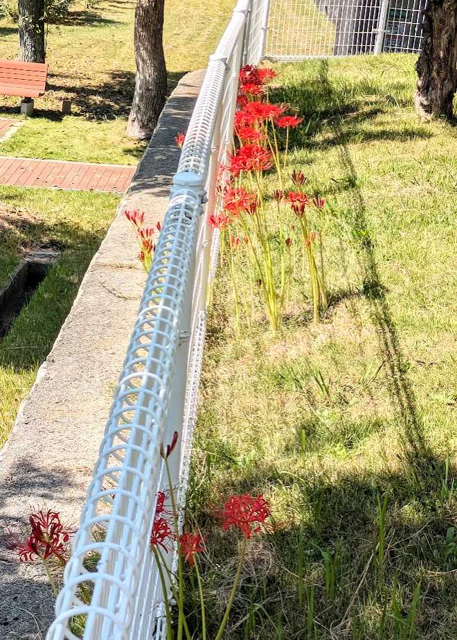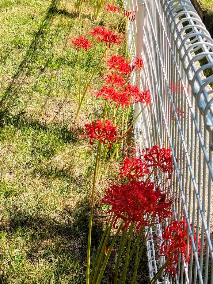 部屋の南の柵沿いの芝生には今年も 彼岸花 が咲きました。