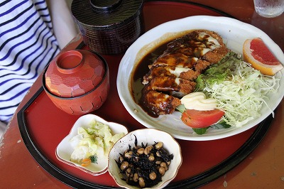 チーズはさみカツのデミグラスソース仕立て。