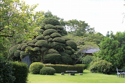 みごとな まきの木のある、立派なお庭のあるお店で