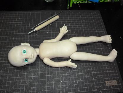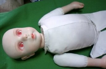 〇.。.。○〇。. 〇〇.。○〇.。○〇.。○〇.。○〇.。○〇.。○〇.。○〇.。○〇.。○〇.。○〇.。〇.。○〇.○.。〇.。.。○〇。. 〇〇.。 こんばんは。。。。ここ数日間は大分寒くなりましたね。。。。。手足が冷えますのでこたつを出して入っています。。。。この間の台風の時は本当に強い雨風~~嵐で怖くなる程でした~~その時、、、風邪もひいてしまい咳は出る、、、、熱っぽい~~など、、、今も体調的に調子は今一です。。。台風去っても、、又接近してるとか、、、、ほんと又、、、一難でしょうか~~~この台風で、伊豆大島では沢山の方々が亡くなられてとても残念で悲しいです~~伊豆大島は私にとってはとても想い出深い所です~~遠い昔、、、、社会人3年生の時~~会社の同期の女の子達と4人で伊豆大島に小旅行に行きました。。。。2月のまだまだ寒い時期でしたが、、はままつちょうから大きな船に乗り~~~伊豆大島には早朝の2時頃に着きました。。植物公園行ったり、、、サイクリングコースを4人でレースしたり、、、、いろんな楽しい経験をしました。。。 夢いっぱいに胸大きく膨らませていた頃~~~の 本当に懐かしい想い出の地です~~~ 伊豆大島の亡くなられた方々~~~ ご冥福をお祈り致します。。。。 ~~~さて、、、お人形~~~ もっと早くにアップしたかったのですが、色々、、他の事に時間を取られ 遅くなってしまいました。。。 毎日手を休める事無く時間を過ごしてはおりますが、、、そんなにスピードは出なく 亀さんのような進み具合なんですが~~~サーニットと言うこの樹脂粘土の素材の特性を知りつくしているわけでもありませんので、、今回はお勉強がてら、、、色々試しながら創作をしておりました。。。どのようにすれば、この素材がより強度を増す作りにする事が出来るか~~~などなど~~粘土を造形しながら、、改めて分かった事など~~ちょっと進歩しました。。。今回の抱き人形ベビーちゃんはクロスボディーにしようと白い生地で作ってみましたが、ちょっと安定性と丈夫さに欠けるので布生地は使用しませんでした。。 こちらは牛革をカットしたものです~~ これを使用しました。。。 出来ました。。。革で作ったボディーです。。。がっちりと丈夫です~~ これにコットンなど詰めてお手手やあんよを繋ぎます~~~これって、、革っていうのは、手で仮縫いや縫い合わせの時、縫い針が中々刺さって行かず、、ほんとに大変でした~~(><)お手手が痛くなりますよ~~^^; そして、、、腕の方まで作ったお手手~~ あんよも太ももまで出来ました。。。 お顔には軽く仮の彩色してあります~~ まだまつ毛はつけていません~~~この子には、このようなかつらを被せたいのですが中々思い通りのかつらが無く注文してはおりますが まだ手元には無いので他のお人形用のかつらを被せてあります~~ (^^;) 取りあえず仮のかつらを付け出来たお手手あんよをボィーとお繋ぎしてみまた。。。 こんな感じになりました~~(^ー^*)p以前作っておりましたリボーンドールという、ビニールキットに彩色し髪の毛1本1本植毛して作る本物の赤ちゃんのようなプクプクぽてぽてのベビー人形、、、のような子を作りたかったんですけどね~~~ こちら、、他のお人形のお洋服を着せてみました。。。 後、作り置きのヘッドドレスを被せてみました。。。。 こんな感じに仕上げたいので、、、お洋服や帽子などの作成。。。。そして別のお人形のヘッドの作成も含めて明日も又頑張ります。。。 ~~~~皆様もお風邪などひきませんように~~~ ☆・ 〇.。.。○〇。. 〇〇.。○〇.。○〇.。○〇.。○〇.。○〇.。○〇.。○〇.。○〇.。○〇.。○〇.。〇.。○〇.○.。〇.。.。○〇。. 〇〇.。☆・。:*:。・★・。:*:。・☆・。:*:。・★・。:*:。・☆・。:*:。・★・。:☆・。:*:。・★・☆・。:*:。・★・。:*:。・☆・。:*:。・★・。:*:。・☆・。:*:。・★・。:☆・。:*:。・☆・。:*:。・★・。:*:。・☆・。:*:。・★・。:*:。・☆・。:*:。・★・。:☆・。:*:。・★・。:*:。・☆・。:。:*:。・★・。:*:。・☆・。:。:*:。・☆・。:。:*:。・。:*:。・★・。:*:。・☆・。:*:。・★・。:*:。・☆・。:*:。・★・。:☆・。:*:。・★・。:*:。・☆ 〇.。.。○〇。. 〇〇.。○〇.。○〇.。○〇.。○〇.。○〇.。○〇.。○〇.。○〇.。○〇.。○〇.。〇.。○〇.○.。〇.。.。○〇。. 〇〇.。・。:*:。・★・。:*:。・☆・。:*:。・★・。:*:。・☆・。:*:。・★・。:☆・。:*:。・★・。:*:。・☆・。:。:*:。・☆・。:*:。・★・。:*:。・☆・。:*:。・★・。:*:。・☆・。:*:。・★・。:☆・。:*:。・★・。:*:。・☆・。:。:*:。・☆☆・。:*:。・★・。:*:。・☆・。:*:。・★・。:*:。・☆・。:*:。・★・。:☆・。:*:。・★・☆・。:*:。・★・。:*:。・☆・。:*:。・★・。:*:。・☆・。:*:。・★・。:☆・。:*:。・★・。:*:。・☆・。:。:*:。・。:*:。・☆・。:。:*:。・・。:。:*:。・