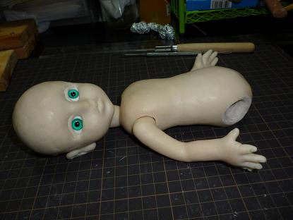 〇.。.。○〇。. 〇〇.。○〇.。○〇.。○〇.。○〇.。○〇.。○〇.。○〇.。○〇.。○〇.。○〇.。〇.。○〇.○.。こんばんは。。。。今の時間、、、外は風が結構あってビュンビュンしてるけど、、、部屋の中はムンムンしてて今日もかなり暑かった~~~お人形作っている、、というと奇麗を想像しますけど~~~この作業している部屋の中は~~かなずち、、ヒートガン、、ペンチにナイフ、、、のこぎり~~と、、、とても奇麗~~可愛い~~からは程遠いほどの物でちらかってて~~~ひとまず片づけないと駄目なほどの散らかりようです~~でも~~~暑くって~~~だらりだらり~~でお片づけも進みません~~~もう~~8月も今日で終わりですね~~~ほんとに早い~~~早過ぎる~~~時計の針を戻したいです~~^^; ~~~エリコ3号作成中作って置いた小さいお顔~~~ 頭をカットして中身を取り出しヤスリをかけてあります~~ 後お耳をつけて~~~ 直すとこはきちんと修正してから又焼きます~~ ~~~2~3日前に作ったお手手とお身体です~~~ 前回のよりは結構小さいサイズになる予定です~~ 後、、あんよを作り~~お尻は前回と同じ作りでクロス(布か革)に綿を詰める形にします~~3個作って置いたお顔のうち1個やっと完成しましたので今度2個目のお顔のお人形の作成に取り掛かりたいと思います~~ ~~以前に仮メイクに仮のかつらでアップしたこのヘッドです~~ このお顔と上にアップした小さいお顔のお人形を同時に 進めていきたいと思います~~ 、、、ところで、、、明日9/1は浜松町産業貿易センターでドールショウが開催されますね~~11時~16時との事ですので、、、遅れないようにして~~~行きたいと思います~皆様もお時間あるようでしたら行かれてみてはいかがでしょうか~~~明日の当日に体調不良にならないよう気をつけなくては~~~です~~(@~@)ノ ☆・。:*:。・★・。:*:。・☆・。:*:。・★・。:*:。・☆・。:*:。・★・。:☆・。:*:。・★・。:*:。・☆・。:。:*:。・