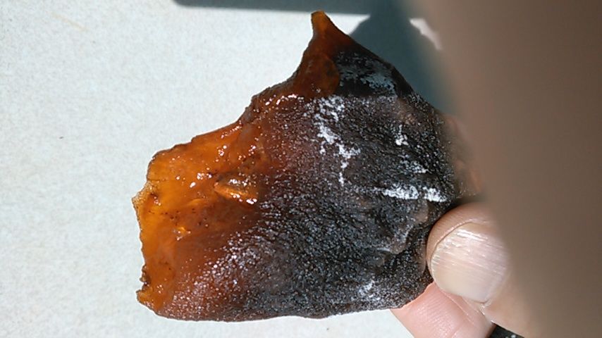 写真は干し柿ですが、この位のとろみのある干し柿がいい。乾燥しすぎると固めに仕上がってしまうのです。約2ヶ月も干すと固めになってしまいます。写真のように透明感の残るタイミングで食べたいと思い今年は3回に分けて柿の皮を剥きました。これ2回目のものです。