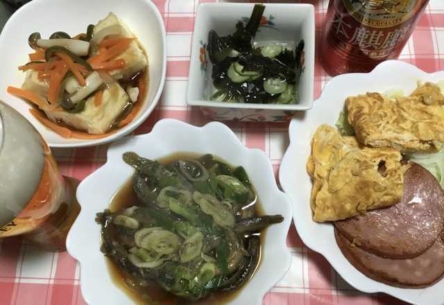冷蔵庫で冷やした煮凝りどぜうに唐辛子を振って朝飯でした。