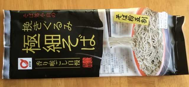 そば乾麺を茹でてアレコレと食べ比べてみましたが今のところでは、この「挽きぐるみ極細そば」が一番私好みかも。そば粉五割なのだが美味しく食べられる。細いので茹でるのも2分半、カップラーメンの3分よりも短かくていいのだ。