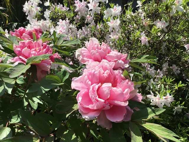 庭のツツジと牡丹が満開です。これも誰かが植えないと今日今日の姿はないのです。ツツジは地植えですが、牡丹は鉢植えです。鉢植えだとどこへでも置きたい場所に移動できます。