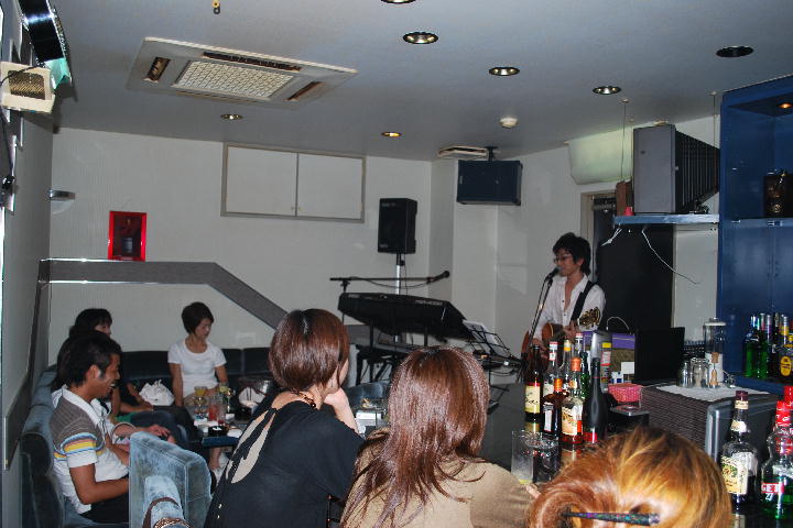 どうも、倉吉市ホテル旅館組合事務局です。久々のライブ、久々の武骨(世間の方々ほど久々では無いと思うけど)仕事帰りに何度も店の前を通り、寄ろうかなどうしようかなと思いつつ通り過ぎていたのですが、ある日表のインフォボードに「8/19 竹内克文ライブ!」告知!こりゃ行かねばと思ってました。そして昨日が当日…そもそも彼を知ったのは5.6年前くらいでしょうか、未だNCNのテーマ曲とかを唄ってない頃、ノースマンという店でのライブが初でした。何組かのアマチュアバンド演奏が終わった後に登場された訳ですが、衝撃でした。プロ・アマ問わずに数々のライブ鑑賞をしてきた私ですが、ギター1本であれだけの世界を作りだす事に感動しました。元々地元(三朝)の出身なのですが現在は東京で活動されており、時々戻られてはライブをされており、その後NCNのテーマ曲やキタロウズの応援歌等、地元との交流も盛んにされており、中部だけでなく県内各所でライブをされてます。今回は親交のあるマスターからの依頼で開催されたとの事で、当然ライブの途中に競演かと思いきや、ひとりで「オネスティ:ビリージョエル」を熱唱!後半には、本日PA等でお手伝いしているタケシーも競演(急に決まったらしい)本人のライブより緊張した面持ちでのコーラス&ハーモニカでした。今月の29日には東京の新橋にオープンする鳥取県アンテナショップ「食のみやこ鳥取プラザ」でもライブをされるとの事。東京にお住みの鳥取県人、竹内さんに興味を持った東京在住の方々、是非29日にはおいで下さい。