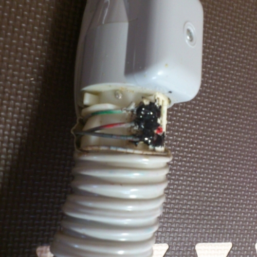 嫁さんから 掃除機が壊れたからみてとの指令が昨日あってました。なんでもホースを持って運んでたら引っこ抜けた・・・・・とのこと(^^;)当たり前じゃ~~~~~~~!ていうか普通はそれでも簡単には壊れないです。実は以前も修理しているので 多分そこから外れたと思われます。で修理。ホースの根元が抜けてます。ホースには針金が通っていますがじつはノズルに操作ボタンがある場合 この針金に電気が流れてるんです。でこの掃除機だと3本の針金で操作することができています。それを 実際に仮止め状態で動作してみて 配線場所に間違いがないか確認してからハンダ付けしていきます。ハンダの上からコーティング。これで修理完了です\(^o^)/ちらかったけど 修理した掃除機で掃除よろしく!にほんブログ村 家族ブログにほんブログ村 家庭・家族にほんブログ村 ハンドメイドブログにほんブログ村 木工にほんブログ村 車 修理・整備にほんブログ村 自作PCにほんブログ村