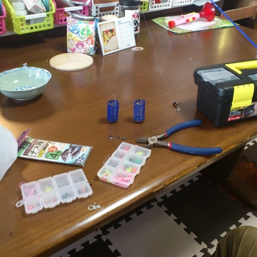 明日が日勤のあと深夜なので今日のうちに準備を進めます。まず投げサビキです。前回 M君とサビキでいいサイズが来たんで今回もサビキで行きます\(^o^)/そのため5,4mのサビキ竿を用意。そこに浮き止めを買ってきたんで仕掛けを作っときます。今回は今後の遠投カゴに備えてロケットカゴを改造して遠投カゴを作ったんでそれを使ってみようと思います。あとはその合間にキスを釣るための仕掛けをセットして完成(^o^)子供が寝てからの作業なんで 夜中です(^^;)にほんブログ村 家族ブログにほんブログ村 家庭・家族にほんブログ村 ハンドメイドブログにほんブログ村 木工にほんブログ村 車 修理・整備にほんブログ村 自作PCにほんブログ村