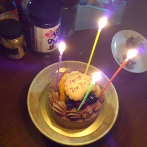仕事の帰りは遅くなり更に釣りで遅くなりました(^^;)でもいいんです。嫁も遅くなるそうだから。さて家に着くと ちょうどみんな帰宅したところ。良かった良かった(^o^)そしたらケーキも買ってきたとのこと。とりあえず40歳なんで4本ローソク。娘が 誕生日の歌を歌ってくれました(^o^)時間が遅かったんで ケーキのあとはすぐにお休みでしたがやはり家族が祝ってくれるのは嬉しいですね。次は 嫁さんの誕生日です。どうしようかな~~~~にほんブログ村 家族ブログにほんブログ村 家庭・家族にほんブログ村 ハンドメイドブログにほんブログ村 木工にほんブログ村 車 修理・整備にほんブログ村 自作PCにほんブログ村